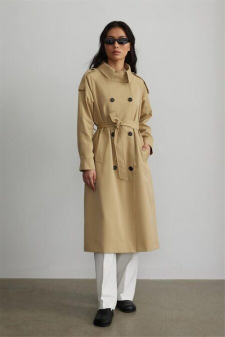 Beige rael stand collar trench coat